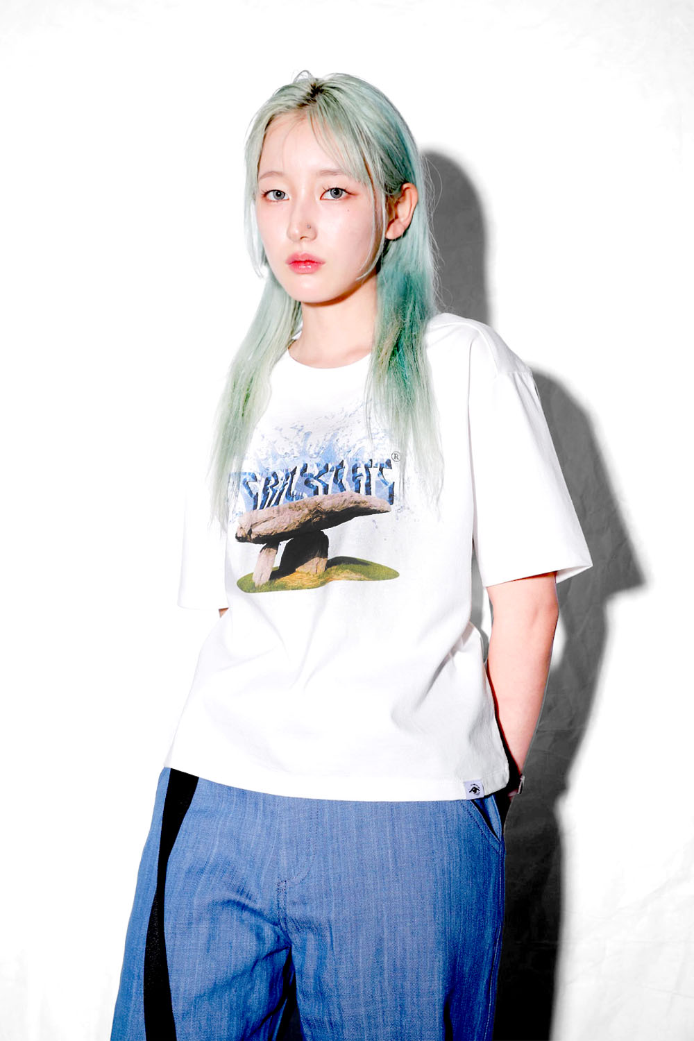 고인돌 세미크롭 티셔츠 : 화이트