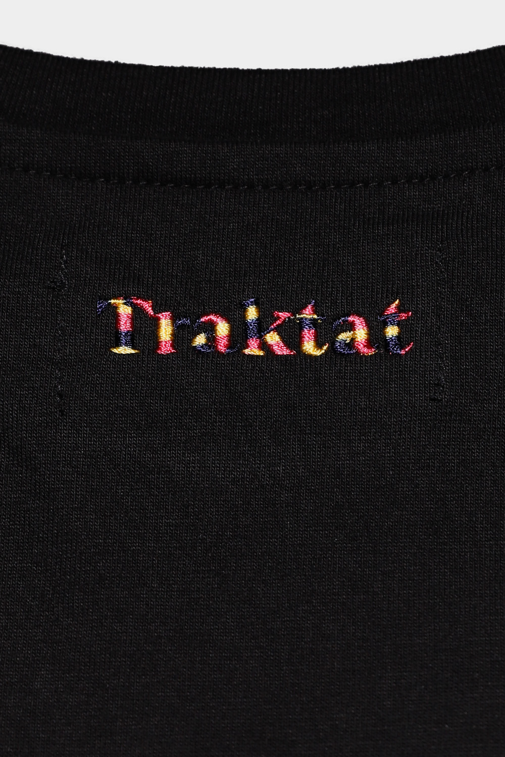 : 트락타트만의 특징적인 봉제 방식으로 어깨 라인을 체인스티치로 마감하였습니다.